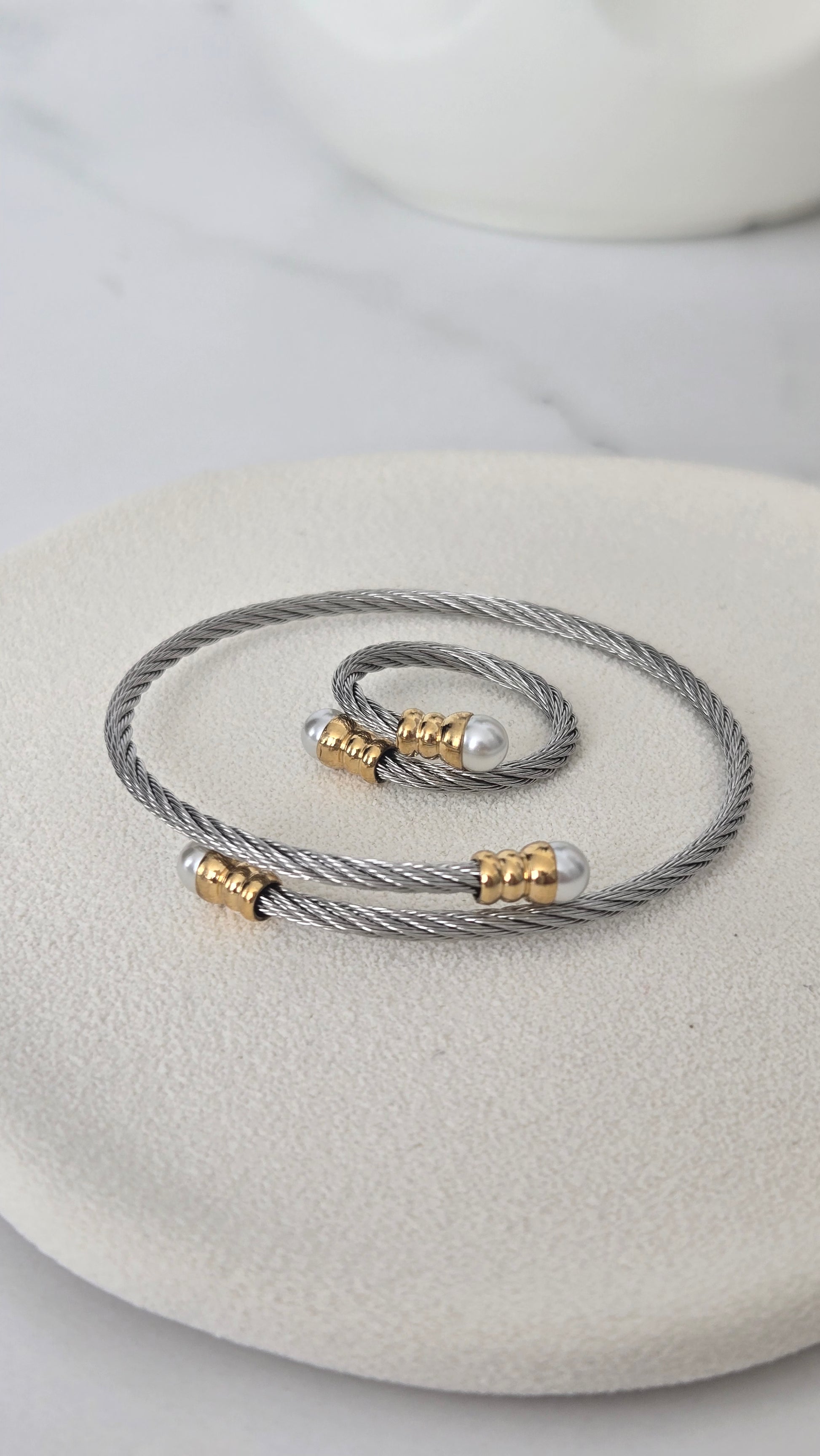 Introducing the Bijoux Set! Versatile and timeless, this set includes 1 bangle and 1 ring in a striking two-tone design. Made to be light and easy to wear, it's the perfect accessory for any outfit. Enhance your style and make a statement with Bijoux!