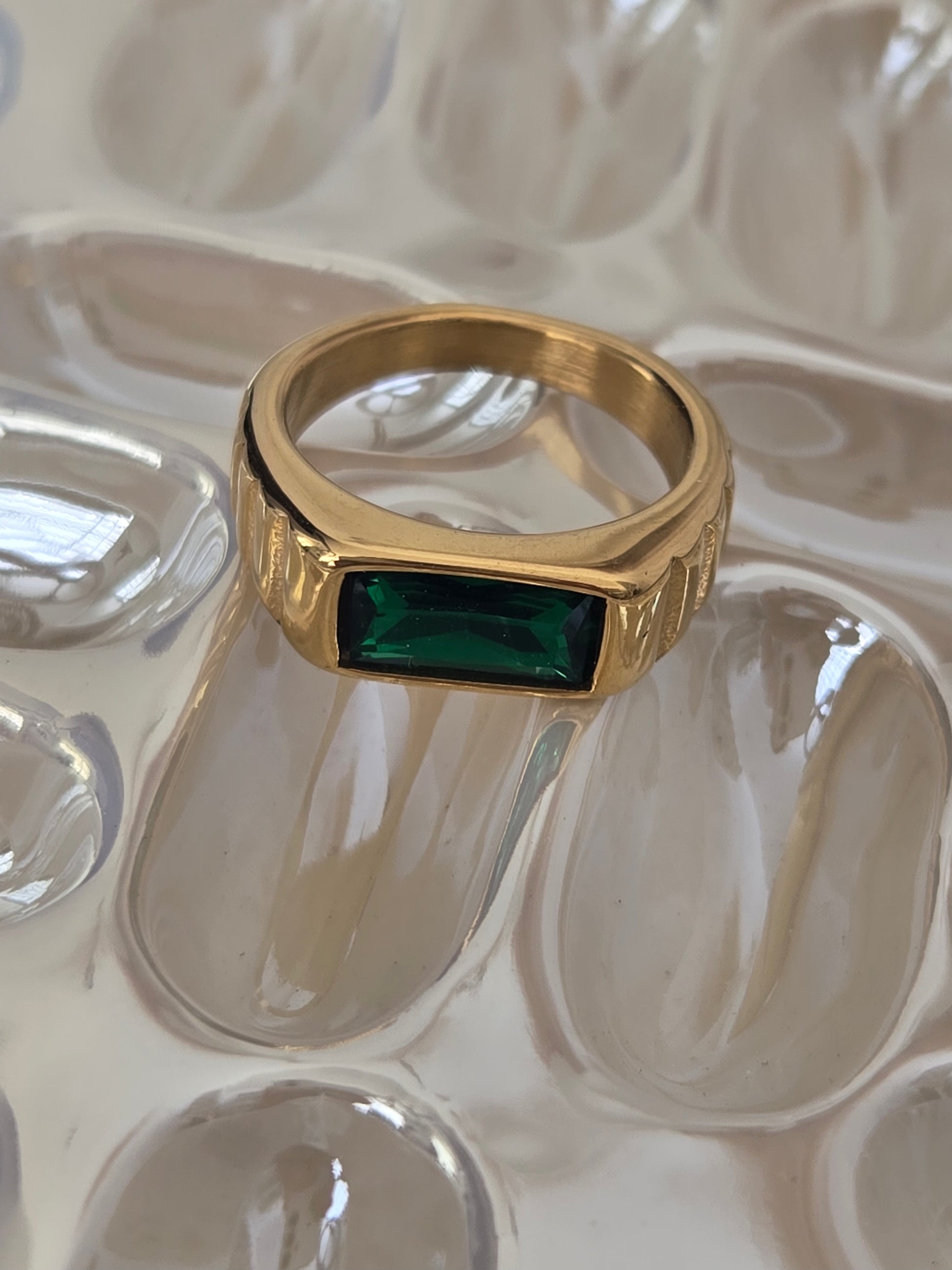 Elevate your style with our stunning Emerald Ring. Made with high-quality stainless steel and a brilliant emerald stone, this ring is the perfect accessory for any occasion. Sized at 7, it's a bold statement piece that will add a touch of elegance and sophistication to any outfit.