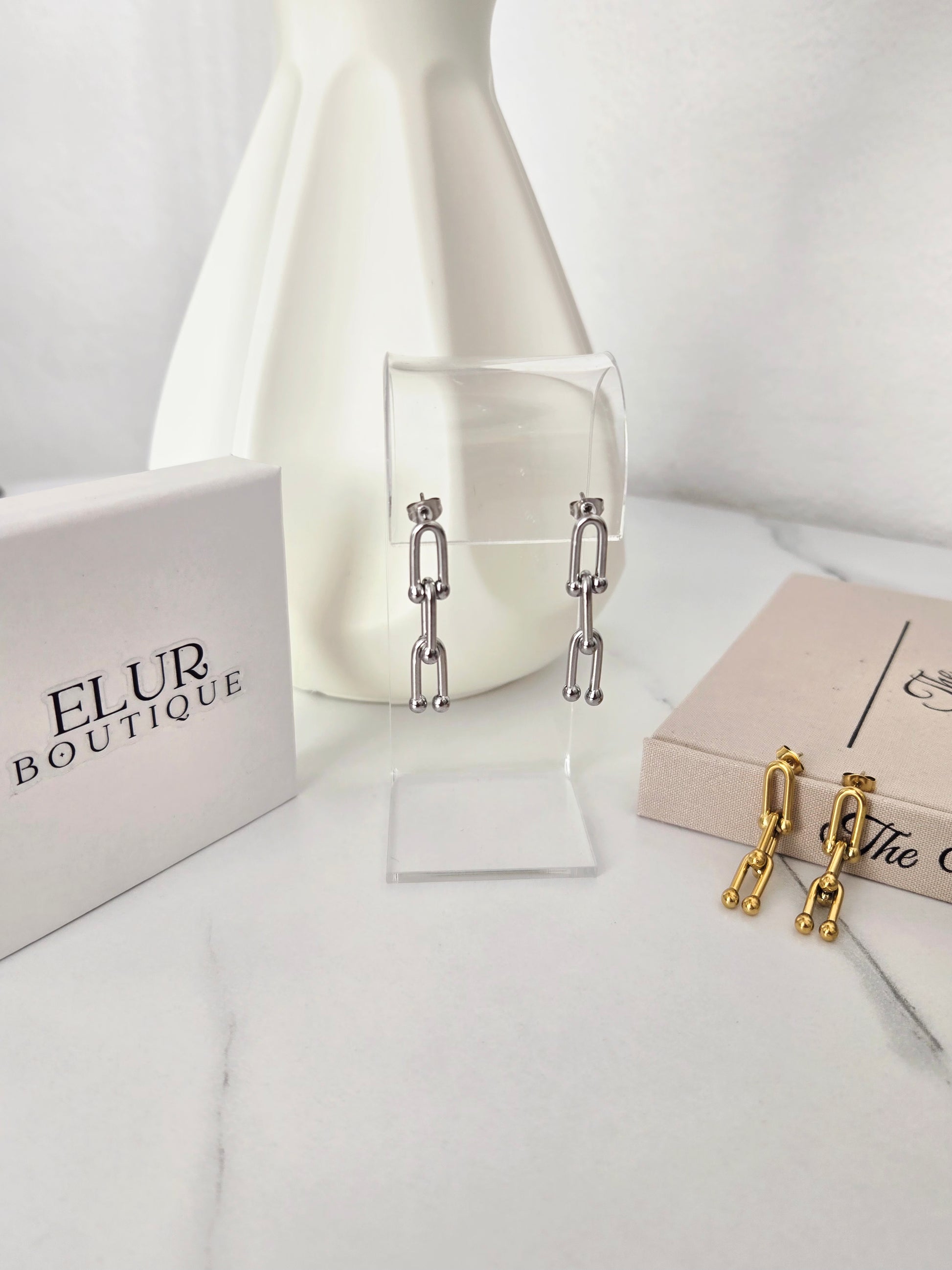 Elevate your style with our Estefanía Earrings. Made with stainless steel, these earrings exude elegance and timelessness. Add a touch of sophistication to any outfit and make a statement that lasts. Perfect for any occasion, treat yourself or a loved one to these stunning earrings!