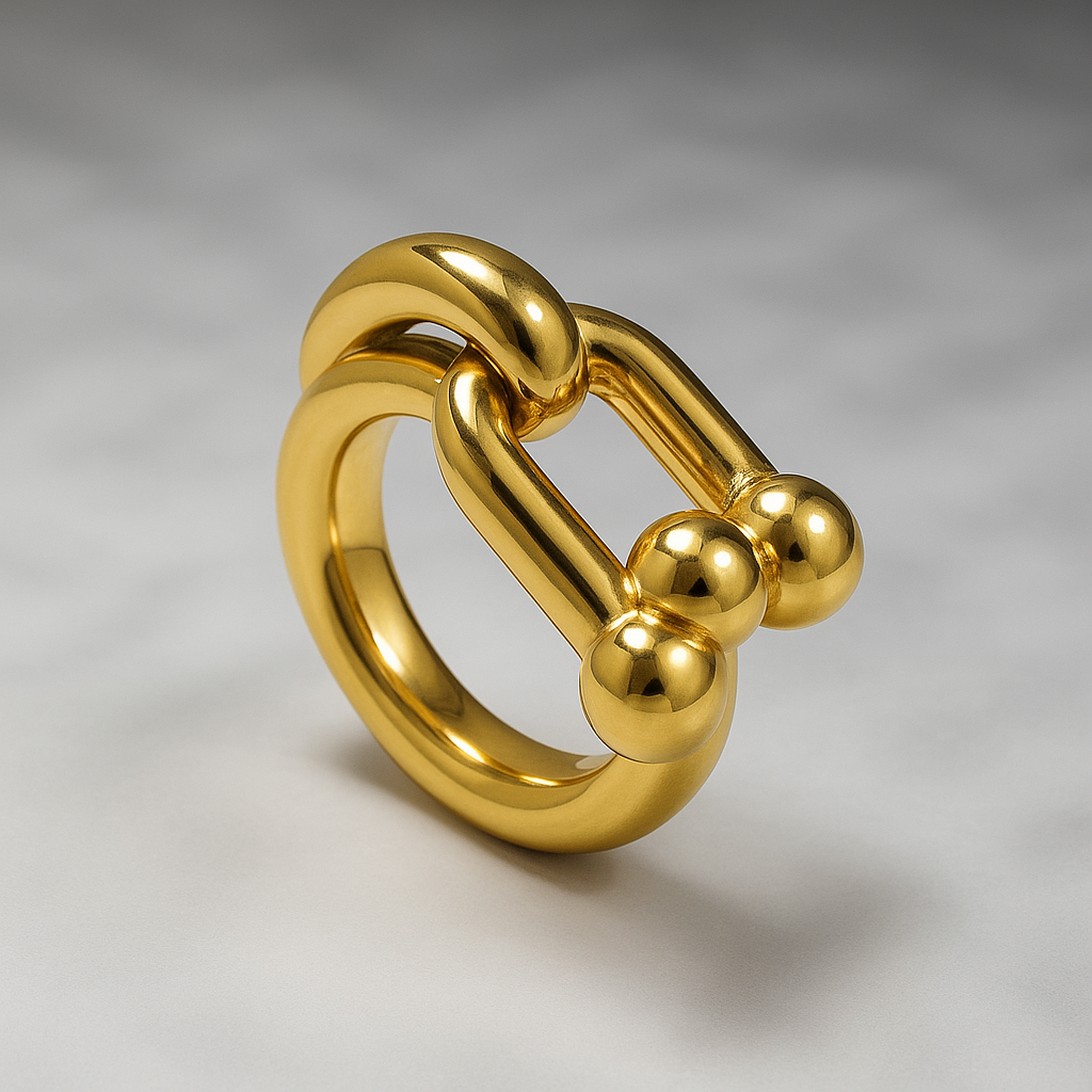 Elevate your style with the Estefanía Ring. Crafted from stainless steel, this timeless piece adds an elegant touch to any outfit. Its versatility allows you to effortlessly transition from day to night, making it a must-have for any wardrobe. Upgrade your accessories game and feel confident in this stunning ring.