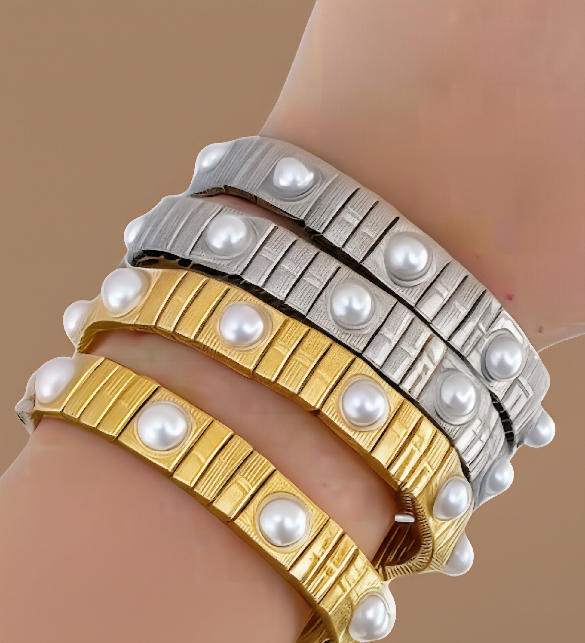 Sophistication meets versatility with our Flexible Pearl Bracelet! Made of durable stainless steel, this timeless piece is perfect for stacking with other bracelets for a unique look. The pearl adds a touch of elegance, making it a must-have accessory for any occasion. Elevate your style with this must-have bracelet today!