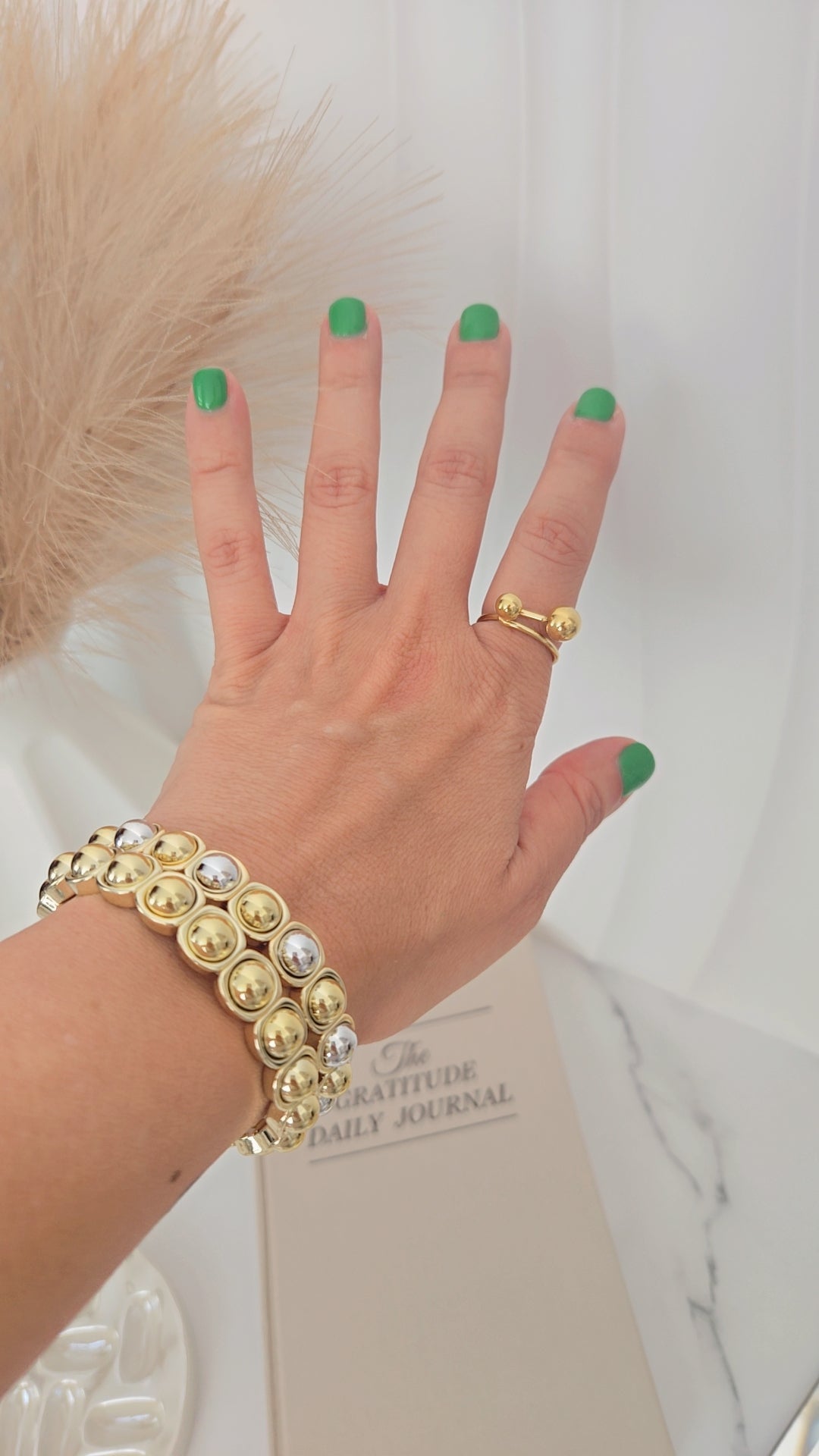 Elevate your style with our Holanda Ring, crafted from durable stainless steel. Its two-tone design exudes sophistication and timelessness, for a truly classic accessory. Make a bold statement and enhance any outfit with this must-have piece.