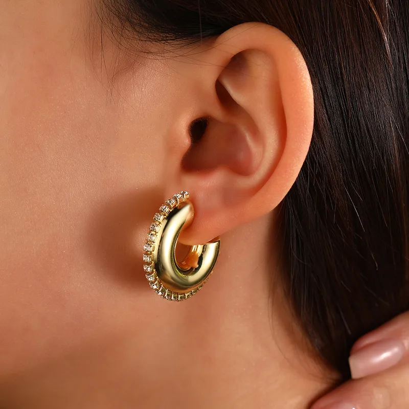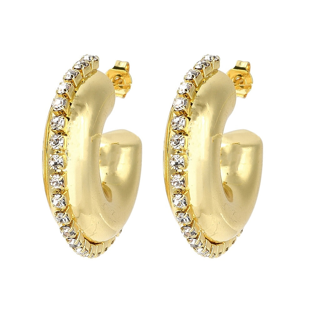 Realza tu estilo con nuestros aros gruesos de diamantes de imitación. Con un baño de oro de 18 quilates y un brillo radiante, estos elegantes aros añadirán un toque de glamour a cualquier look. Siéntete segura y radiante con cada uso.
