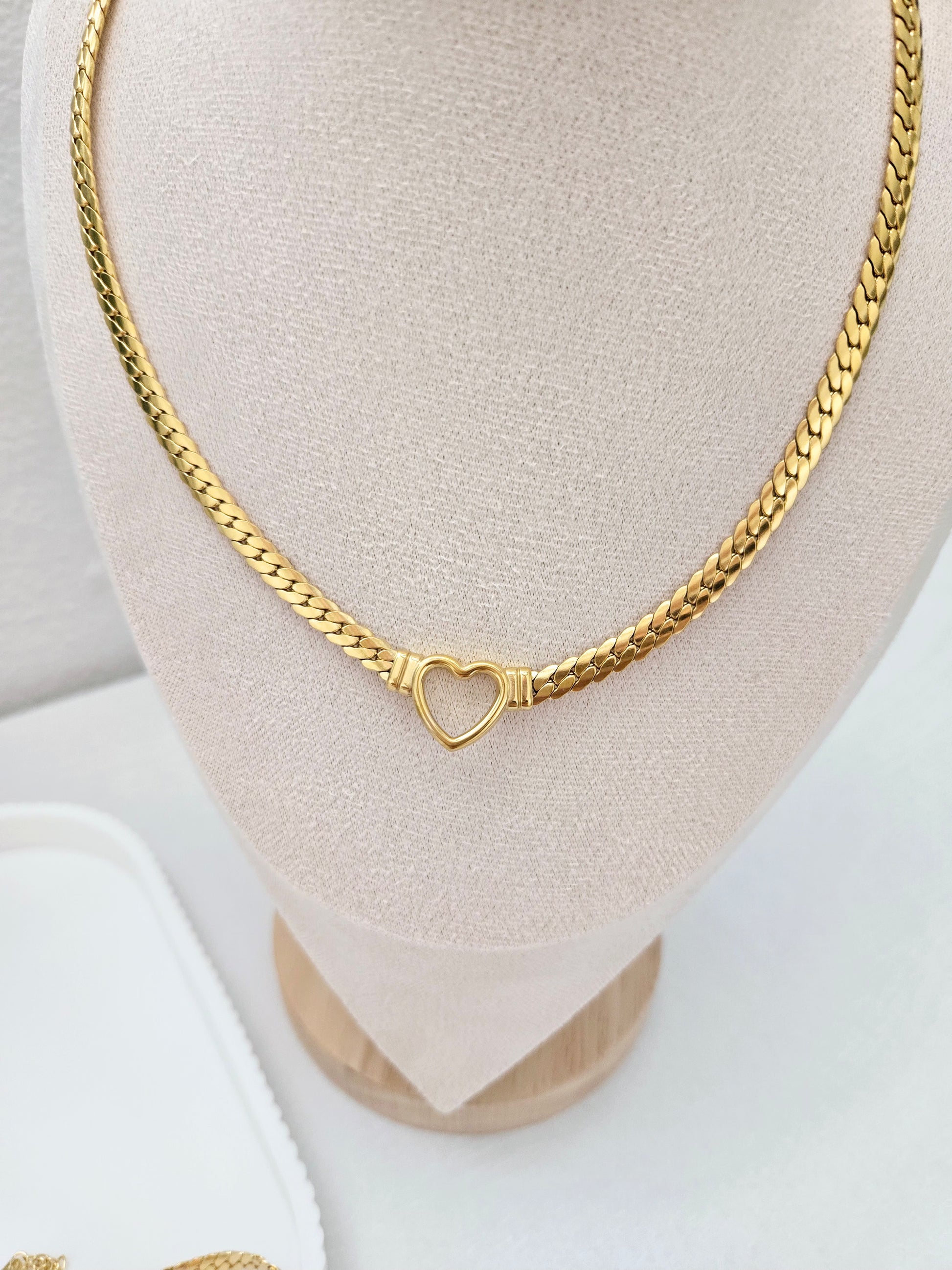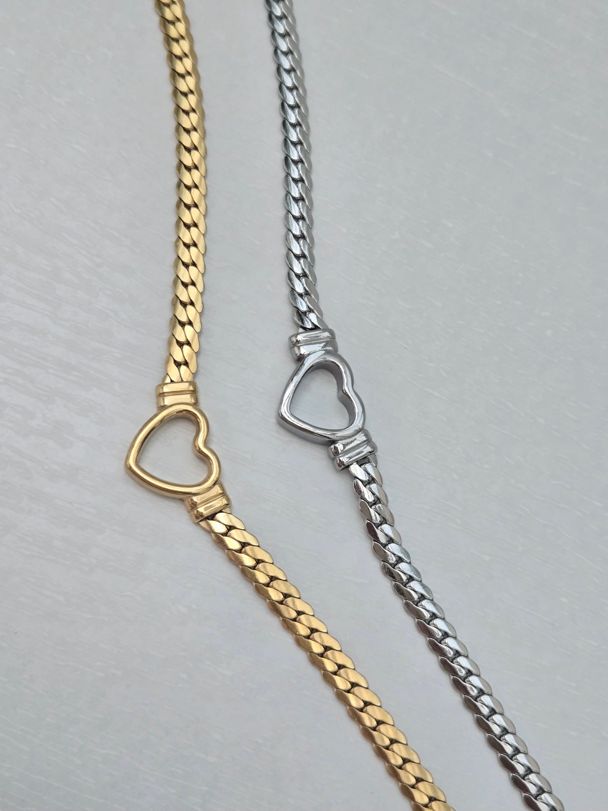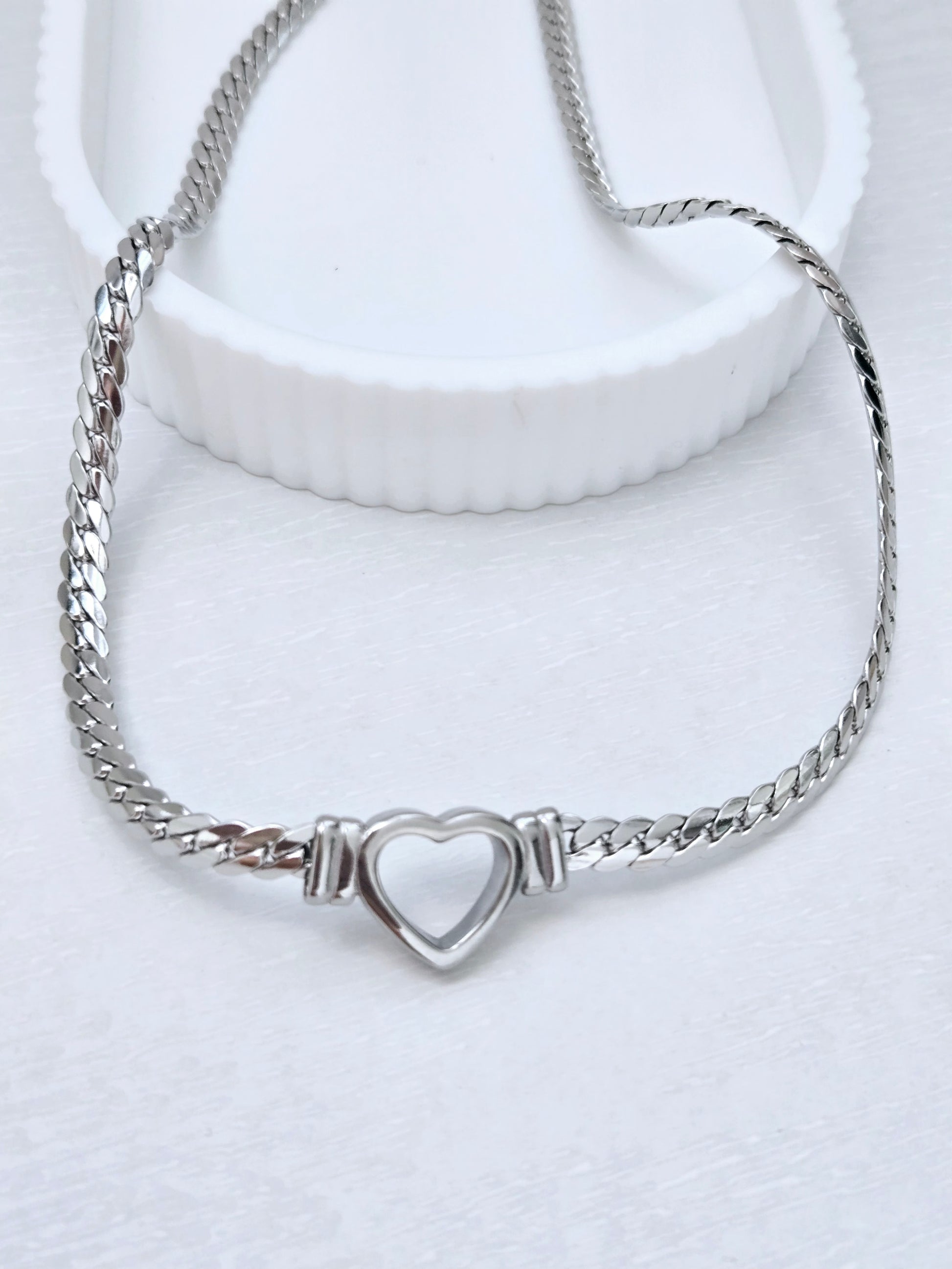 Wear your heart around your neck with the Julieta Choker! Made of durable stainless steel, this choker is perfect for lovers and adds a touch of edginess to any outfit. Express your passion and love with this unique piece of jewelry. Available 19" extended to 21"".